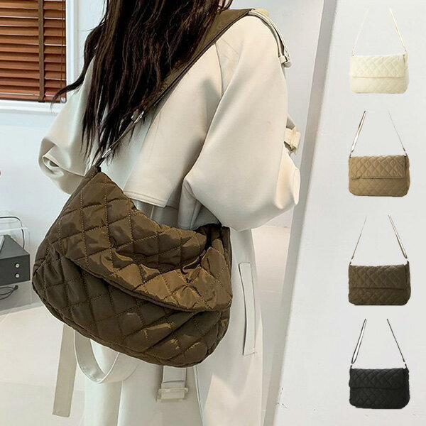 ショルダーバッグ バッグ キルティング 布 無地 肩掛け 斜めがけ A4 大きい 鞄 レディース ホワイト カーキ コーヒー ブラック