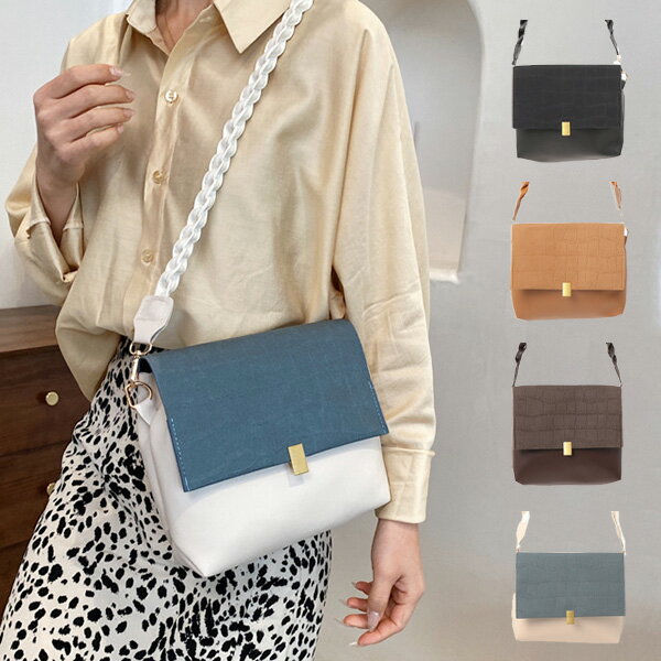 ショルダーバッグ 小さめ 2WAY 合皮 PUレザー 韓国 黒 斜めがけ クロコダイル 型押し バッグ 鞄 レディース ブラック コーヒー ブラウン ブルー
