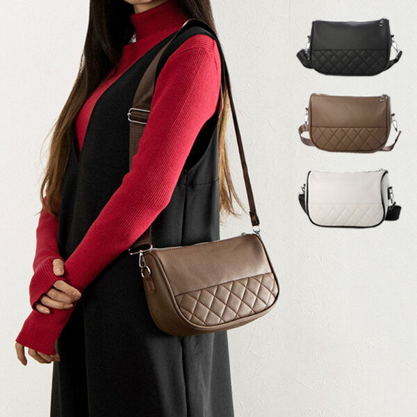 ショルダーバッグ バッグ 斜めがけ 肩掛け レザー調 キルティング ミニ 小さい 鞄 レディース ブラック コーヒー ホワイト