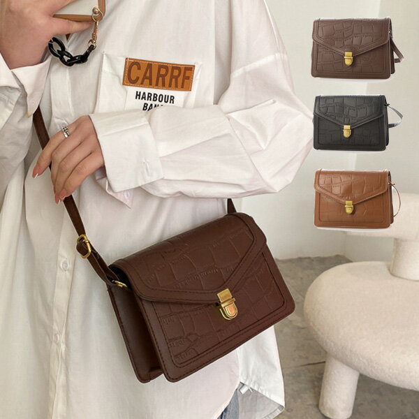 ショルダーバッグ バッグ 斜めがけ ミニ コンパクト PUレザー 合皮 韓国 黒 クロコダイル 型押し 鞄 レディース ブラック ブラウン コーヒー