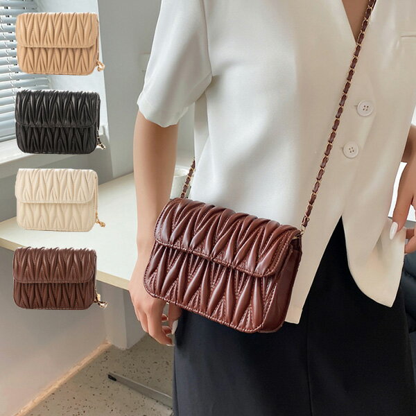 【取り寄せ対応】ショルダーバッグ バッグ 肩掛け 斜めがけ レザー調 型押し 小さい ミニ 鞄 レディース コーヒー カーキ ホワイト ブラック