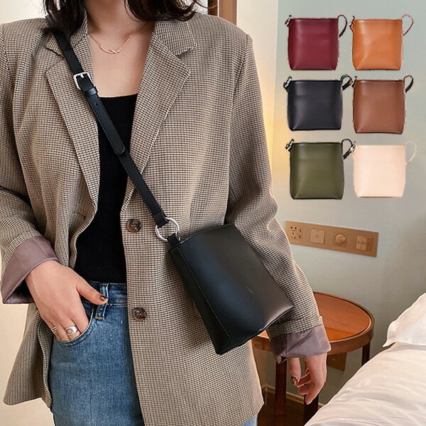 ショルダーバッグ 斜めがけ 合成皮革 PUレザー 無地 小さめ 軽い シンプル バッグ 鞄 レディース ワインレッド ブラウン ブラック コーヒー グリーン ベージュ