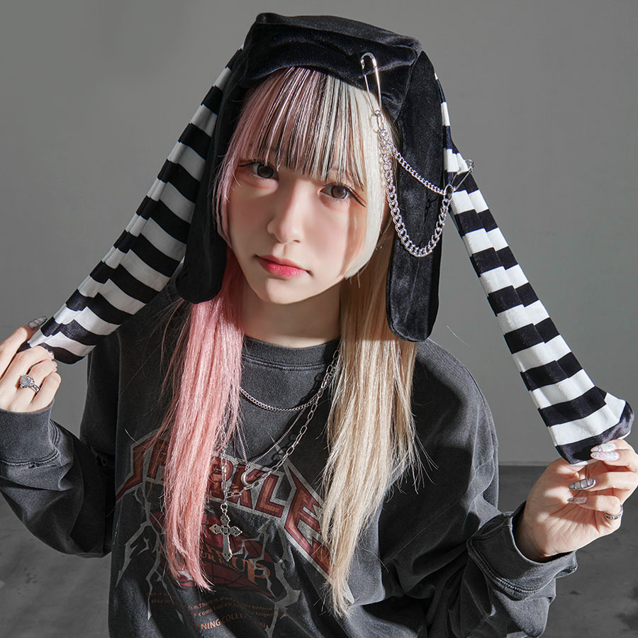 商品説明 CV Select【シーブイセレクト】PSYCHO NATION うさ耳ボーダーベロアキャップの登場です。 ベロア素材のうさ耳のついたデザインフルな帽子です。 安全ピンチェーンとボーダーカラーがポイントです。 男女兼用 レディース・メンズでどちらでも使用頂けます。 ハット&キャップ一覧を見る カラー展開 ブラック×ホワイト ブラック×レッド サイズスペック 高さ31頭周り62 当店のサイズの測り方はコチラ ■サイズは平置き計測となっておりますので、1〜2cmの誤差が生じる場合がございます■ ■モニターの環境により、実際のものと素材感・色が若干異なって見える場合がございますので、ご了承ください■ 素材 ポリエステル100% ウサ耳 ニットキャップ ニット帽 地雷系 レディース 帽子 フライトキャップ サブカル系 ストリート系 ピープス系 V系 黒 ブラック ボーダー 赤 白 レッド メンヘラ 病み 地雷系 ファッション ゴスロリ 歌い手