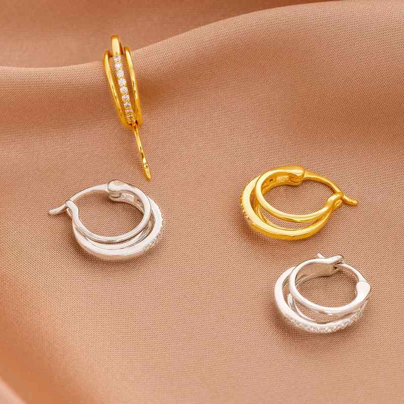 イヤリング レディース シンプル 小ぶり ダブルレイヤー イヤーカフ ゴールド シルバー アレルギー対応・スタイル: 女式・造型: 几何型・处理工艺: 电镀・カラー: 金色, 銀色・流行元素: 円形・スタイル: ins風・款式类别: 耳骨夹・製品カテゴリ: 耳飾・流行元素分類: 几何