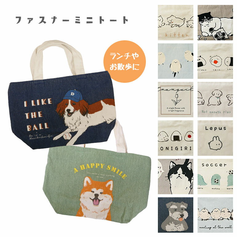 トートバッグ 1000円トート ミニ 犬 猫 アニマル イラスト ランチバッグ サブバッグ 手提げ 肩掛け B5 ファスナー開閉 プチプラ キャンバス 帆布 通勤 通学 旅行 お買い物 習い事 お散歩 学生 ママ 主婦 お土産 レディース キッズ ジュニア イヌ ネコ mi230