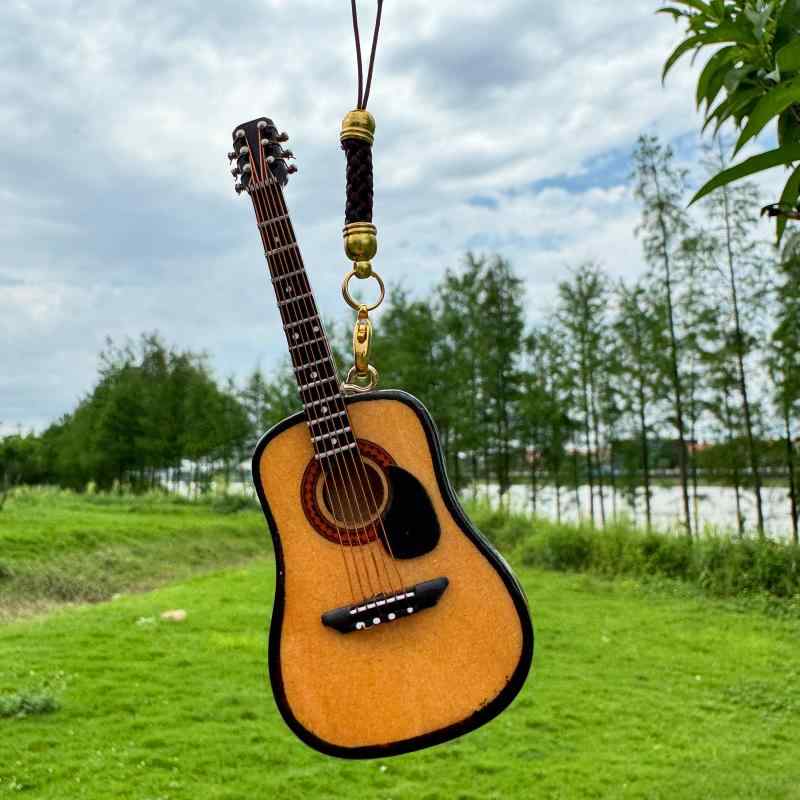 ギター キーホルダー おしゃれ バッグ 吊り下げ ロック 音楽 楽器 ギフト 箱 無垢材 ペンダント ストラップ シンプル リアル メンズ クラシック 茶 ナチュラルカラー