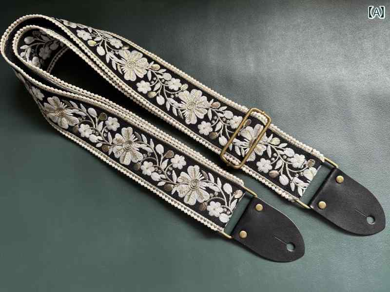 刺繍 ベース エレキギター ストラップ ブラック ストラップ おしゃれ 花