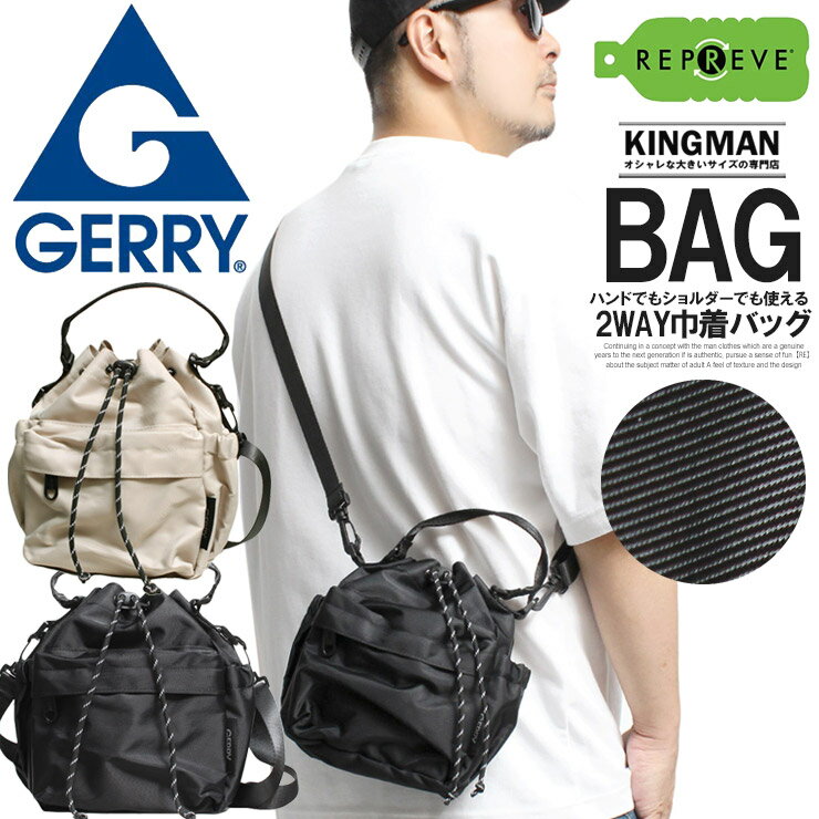 メール便で送料無料 GERRY(ジェリー) ショルダーバッグ メンズ レディース 2WAY 巾着バッグ ハンドバッグ 巾着 男女兼用 ユニセックス 斜めがけ かばん 鞄 手提げ 小さめ サコッシュ レジャー キャンプ アウトドア ペットボトル収納 ストリート系 ワークマン プラス