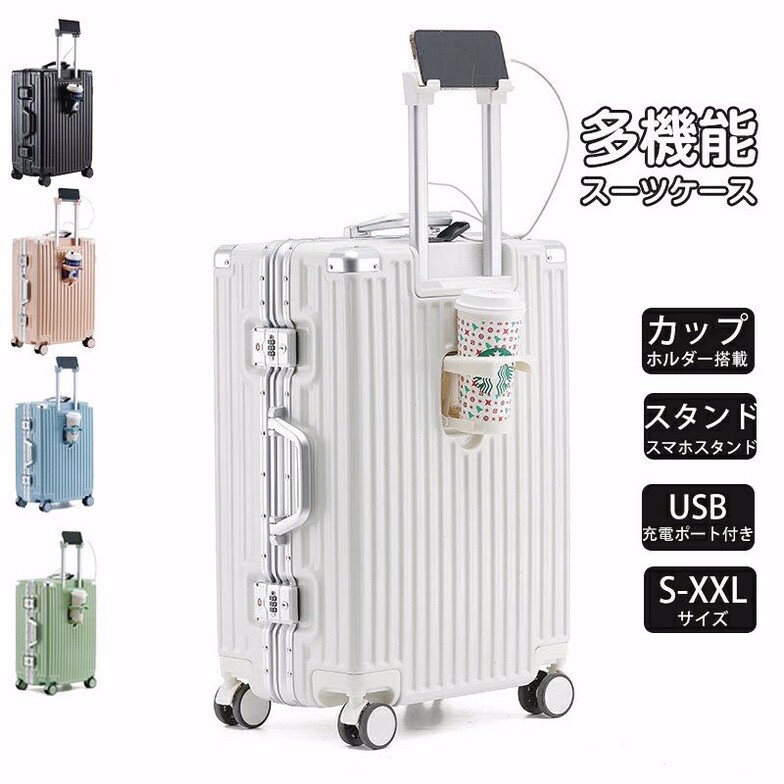 \大容量改良済★1年保証★送料無料/ キャリーケース スーツケース 機内持ち込み フレームタイプ 大容量 耐衝撃カップホルダー付き 軽量 小型 Sサイズ 1-3日用 泊まる Mサイズ Lサイズ 360度回転キャスター USBポート付き スマホスタンド付き 静音 大型 多収納ポケット