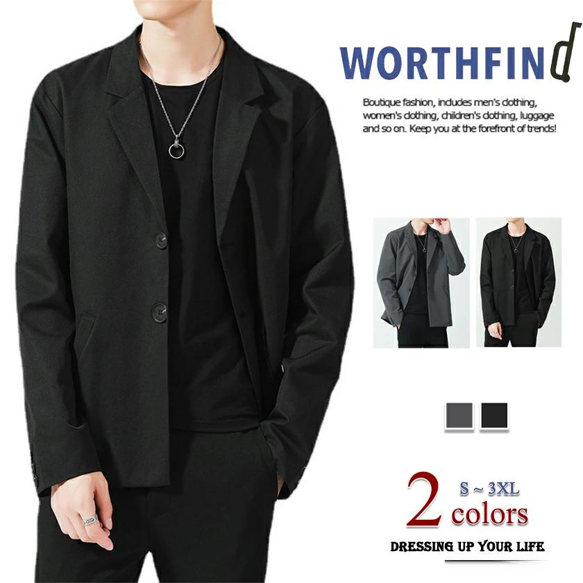 ジャケット メンズ 韓国風 テーラードジャケット スリムフィット ポリエステル素材 シワになりにくい シングルブレスト 1つボタン カジュアル ビジネス 通勤 オフィススタイル 細身 グレー ブラック ブルー
