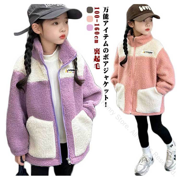 アウター キッズ もこもこ 秋冬 ボアジャケット おしゃれで快適な暖かさ 配色 冬用 女の子 ふわふわ ジュニア トップス 裏起毛 フリースジャケット 保温性抜群 あったか 子供 防寒 ジャンパー ボアブルゾン 男の子