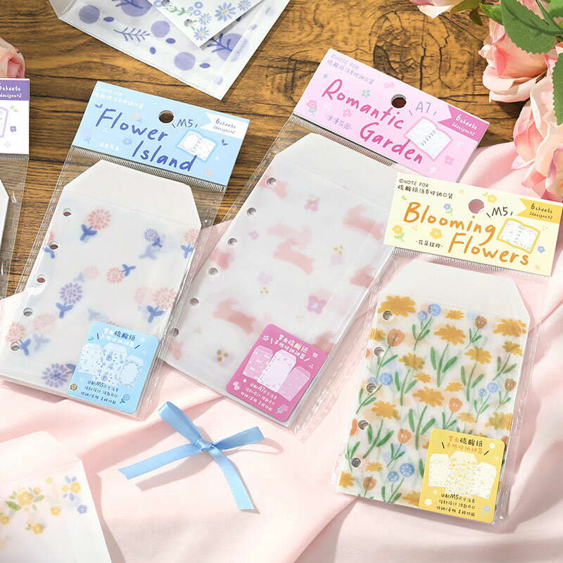 シール帳 M5、A7バインダー対応リフィル 6枚入り 硫酸紙 花 はがせる 女の子 シール台紙 バインダー収納 トレカ収納 シール収納 手帳用 かわいい 封筒 トレカ収納 推し活グッズ オタ活グッズ