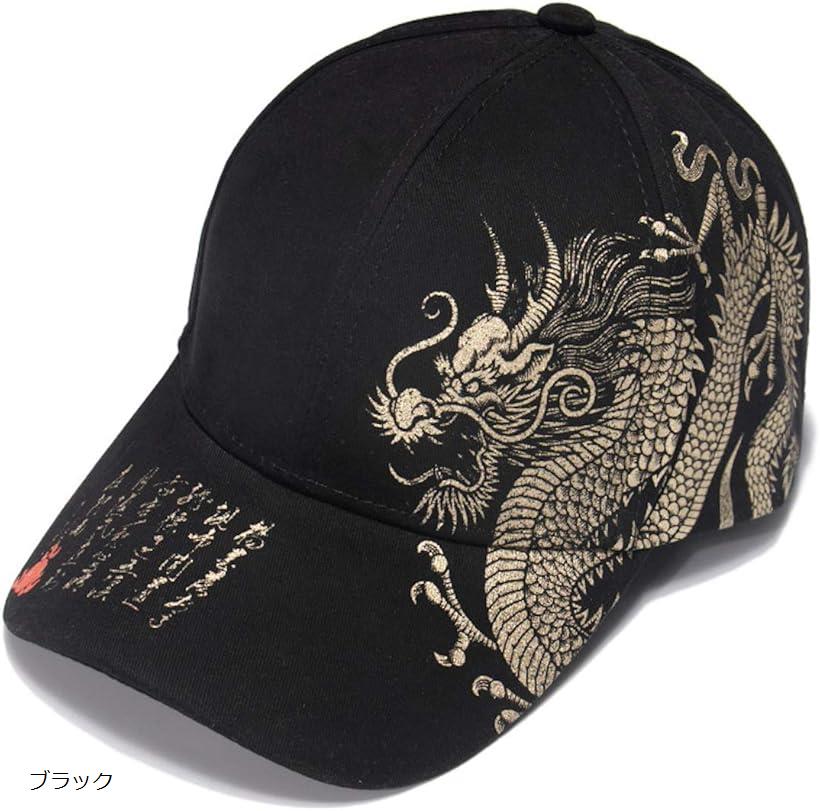 龍 キャップ 帽子 野球 アンパイア ベースボール 無地 アウトドア メンズ ぼうし 春 夏 秋冬 男女兼用ドラゴン カーブ Hip hop ランニング cap 野球帽 トレーニング 釣り 運転 人気 (ブラック, Free Size)