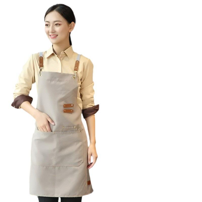 エプロン レディース メンズ カフェ ネイルサロン 商用 ワークユニフォーム 防水 防油 キャンバス 無地 ブラック カーキ ネイビー ブラウン グリーン グレー オレンジ ベレー帽