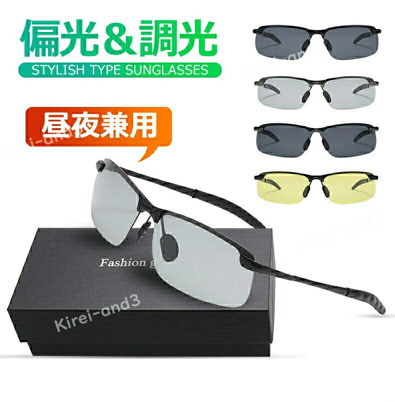【新入荷】サングラス UV99%カット 偏光 調光 昼夜兼用 偏光レンズ 偏光サングラス レンズ自動変化 反射光をカット リアル色彩 包装ケース 保護収納ボックス付き グラス 変色レンズ 紫外線 UVカット 安全運転 ファッション 高品質 夏のビーチ 旅行