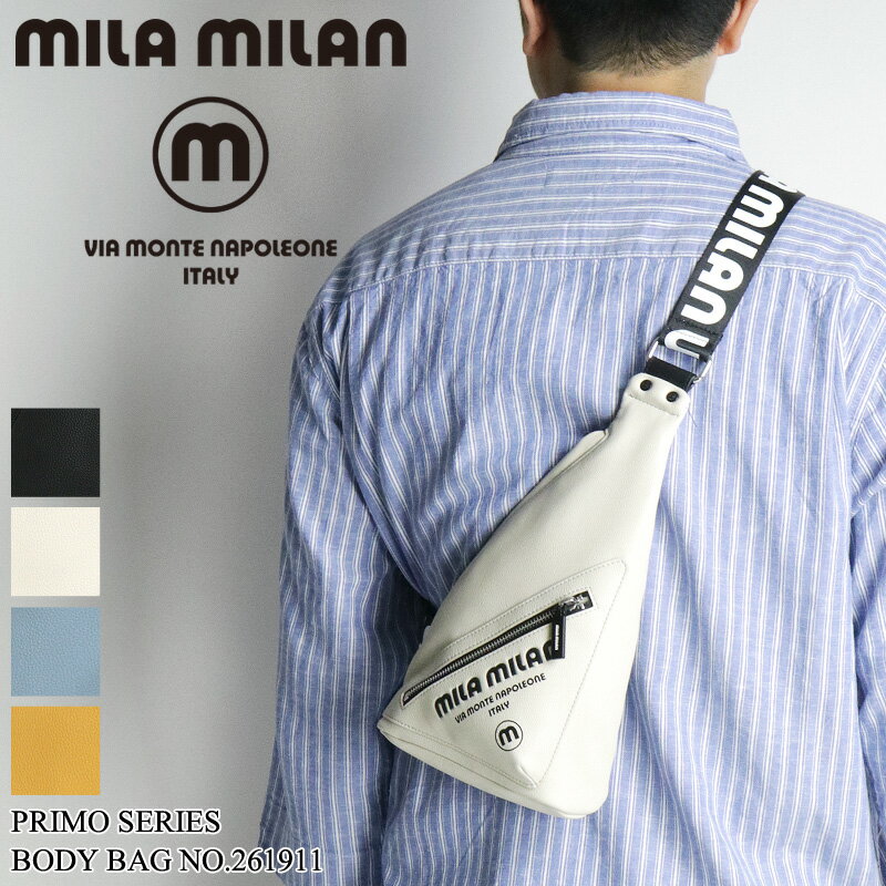 ミラミラン バッグ ボディバッグ メンズ ブランド MILA MILAN Primo プリモ 261911 ワンショルダーバッグ 斜め掛けバッグ 普段使い 旅行 ビジネス レジャー 通勤 ゴルフ 合皮 合成皮革 防水 撥水 レディース 男女兼用 カジュアル オシャレ 人気 鞄 かばん カバン