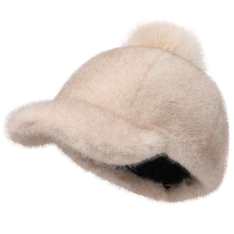 帽子 レディース 水貂 ファー ファー ニット帽 秋冬 防寒 暖かい かわいい おしゃれ 狐 キツネ ポンポン付き イヤーマフ付き ブラック ピンク系