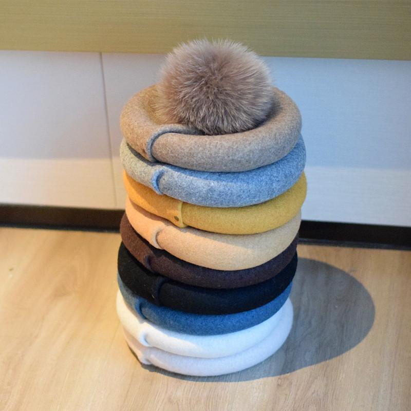 ベレー帽 レディース 羊毛 帽子 ファッション雑貨 キツネ ポンポン付き おしゃれ プリーツ ボタン付き レトロ 画家 秋冬