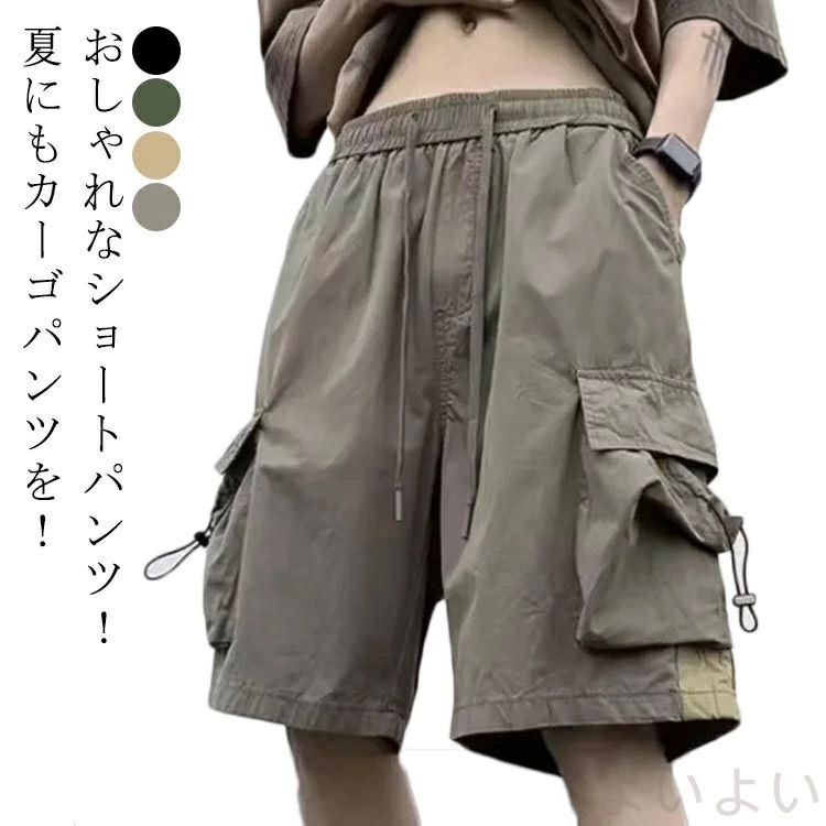 ハーフパンツ メンズ カーゴパンツ ショートパンツ 5つポケット 短パン 半ズボン 大きいサイズ 作業着 アウトドア 通気 七分丈 調整紐 春夏 カジュアル おしゃれ
