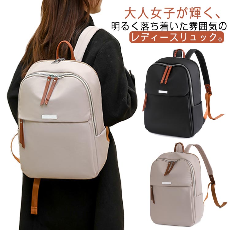 ・大人女子が輝く、明るく落ち着いた雰囲気のレディースリュック。・上品なイメージでカジュアルすぎず、きれいめコーデにも合わせやすいデザイン性の高さが特徴です。・A4ファイルや14インチPCを収納できるほど、見た目以上の収納力・ペットボトルや折りたたみ傘などが収納可能なボトルホルダー・雨の日でも安心の撥水加工・スーツケースのハンドルに固定して走行時のふらつきを防ぐセットアップ機能付き。 サイズ F サイズについての説明 【サイズ】幅30cm マチ13cm 高38cm 重さ約0.44kg 素材 ナイロン オックスフォード ポリエステル 色 ベージュ ブラック 備考 ●サイズ詳細等の測り方はスタッフ間で統一、徹底はしておりますが、実寸は商品によって若干の誤差(1cm~3cm )がある場合がございますので、予めご了承ください。 ●製造ロットにより、細部形状の違いや、同色でも色味に多少の誤差が生じます。 ●パッケージは改良のため予告なく仕様を変更する場合があります。 ▼商品の色は、撮影時の光や、お客様のモニターの色具合などにより、実際の商品と異なる場合がございます。あらかじめ、ご了承ください。 ▼生地の特性上、やや匂いが強く感じられるものもございます。数日のご使用や陰干しなどで気になる匂いはほとんど感じられなくなります。 ▼同じ商品でも生産時期により形やサイズ、カラーに多少の誤差が生じる場合もございます。 ▼他店舗でも在庫を共有して販売をしている為、受注後欠品となる場合もございます。予め、ご了承お願い申し上げます。 ▼出荷前に全て検品を行っておりますが、万が一商品に不具合があった場合は、お問い合わせフォームまたはメールよりご連絡頂けます様お願い申し上げます。速やかに対応致しますのでご安心ください。
