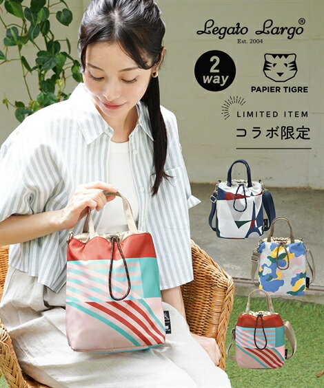 Legato Largo ショルダーバッグ LIPT-F003 楽天 レディース ショルダーバック 斜めがけバッグ レガートラルゴ ブランド PAPIER TIGRE パピエティグルコラボ 小さめ 軽量 軽い アウトドア おしゃれ かわいい 撥水 縦型 巾着