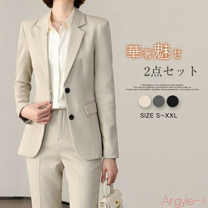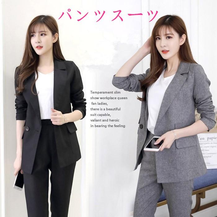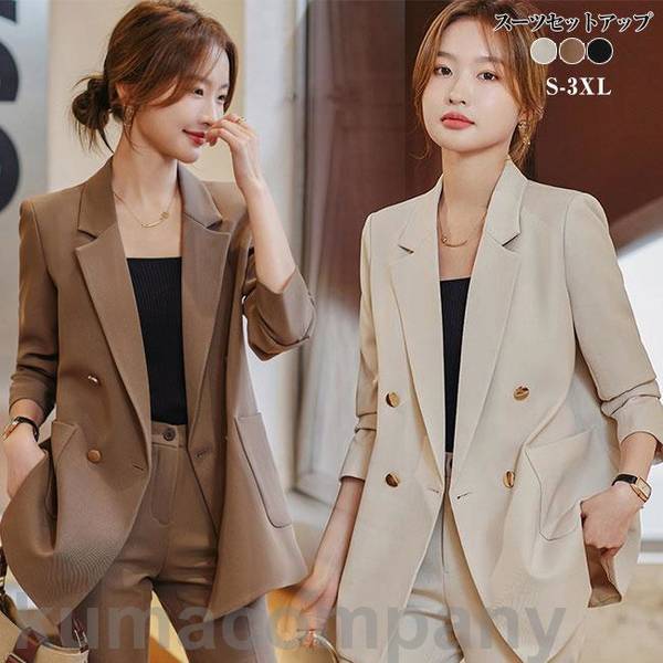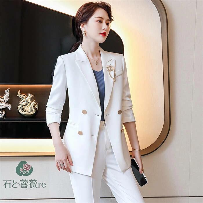 オフィスカジュアル ジャケット 卒業式 体型カバー セットアップ レディース スーツ 韓国 入学式 パンツスーツ きれい