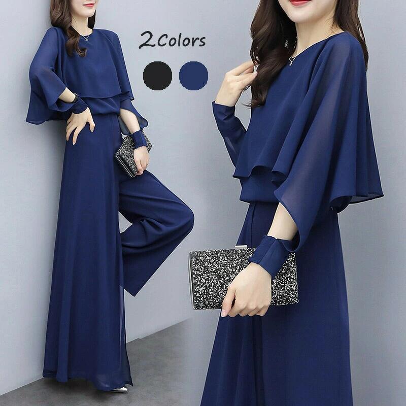 送料無料 2点セット セットアップ パンツスーツ パンツスタイル パンツドレス パーティードレス ワイドパンツ フォーマルドレス 体型カバー 中袖 大人 おしゃれ かわいい 可愛い 結婚式 二次会 演奏会 発表会 謝恩会 20代 30代 40代 50代 海外通販