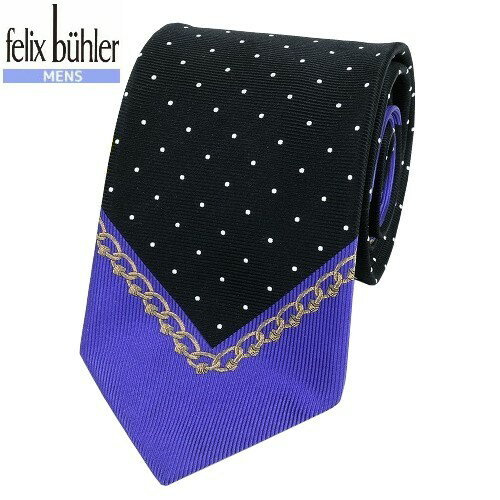 SALE大特価【Felix Buhler】フェリックス・ビューラー 日本製 チェーン刺繍デザインドットシルクネクタイ 就活 ギフト プレゼント ブランド おしゃれ 黒×青『14/9/2』110914【ネコポスで送料無料】