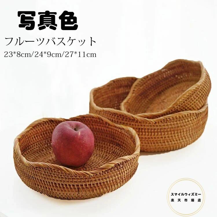 果物かご 家庭用 フルーツボール 盛り付け 藤編み おしゃれ 果物収納 菓子器 フルーツバスケット リビング お菓子入れ 小物入れ トレー プレート フルーツ皿 24*9cm 手作り 収納