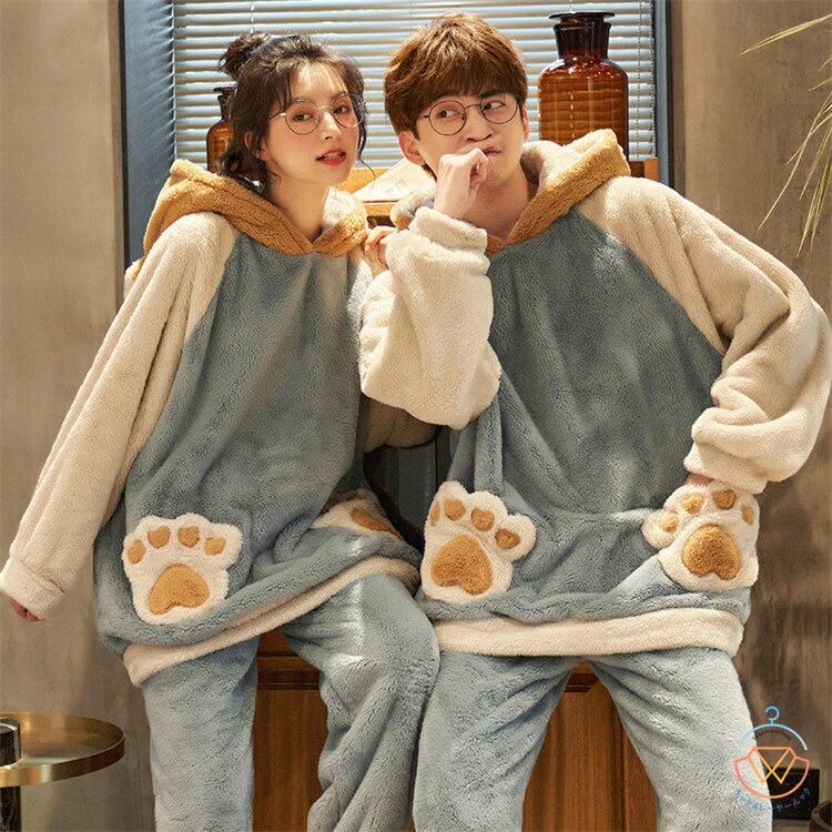 ルームウェア お揃い 暖かい 厚手 長袖 レディース フード付き 送料無料 クリスマス 寝巻き ペアルック 結婚祝い 可愛い ペアパジャマ 冬 上下セット 誕生日 プレゼント メンズ カップルパジャマ もこもこ 部屋着