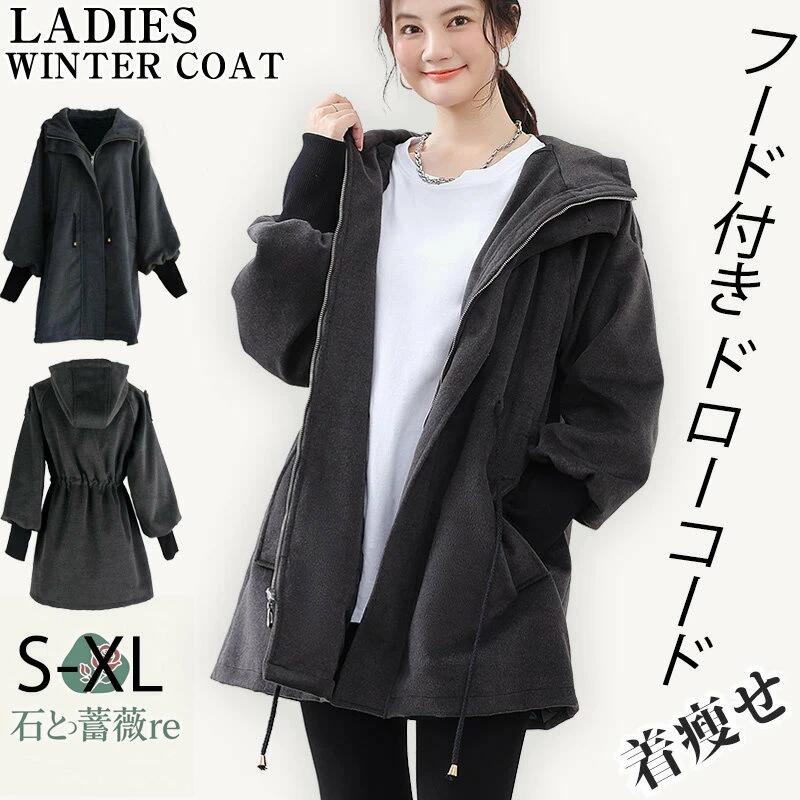 ロングコート レディース トレンチコート ラシャコート フード付き 体型カバー 韓国風 アウター ジャケット フルジップパーカー Aライン 秋冬 防寒 防風 暖かい 可愛い 通勤 クリスマス プレゼント