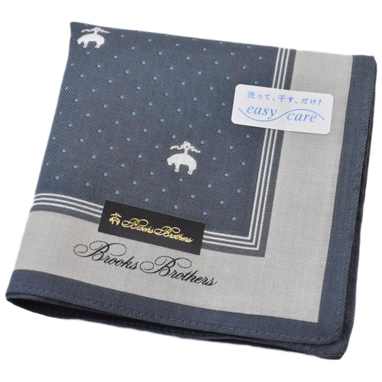 ブルックス ブラザーズ ハンカチ 1枚 メンズ 綿 ブランド ハイブランド BROOKS BROTHERS グレー × ブルー ドット ロゴ 男性 紳士 父の日 実用的 20代 30代 40代 50代 60代 70代 プレゼント ギフト おしゃれ ポイント消化