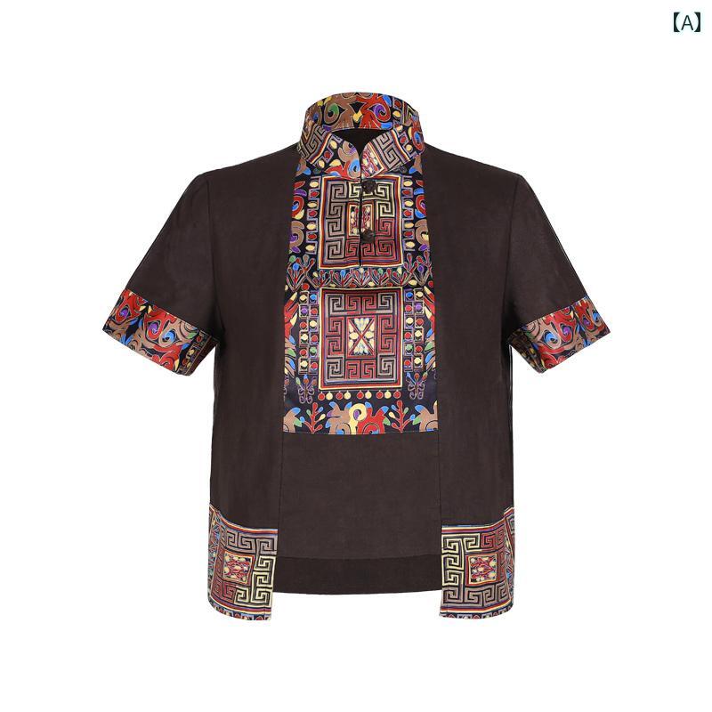 レディース ファッション エスニック エレガント プリント 半袖 スタンドカラー トップスス 春夏 秋