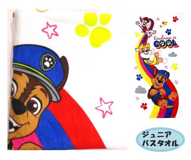 キャラクター ジュニア バスタオル パウパトロール (Paw Patrol) (サイズ 約50×104cm ) ( オフ/カラフル系 ) ( パウパト プールタオル スポーツタオル 子供用バスタオル タオル 男の子 女の子 )