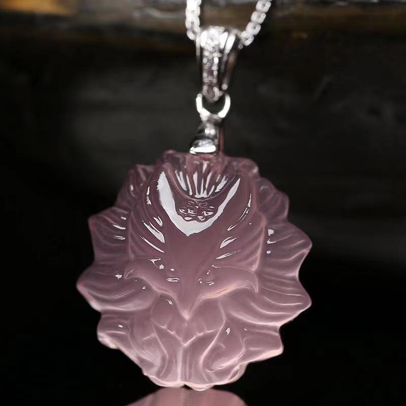 ネックレス 天然石 モザンビーク産 ローズクォーツ 九尾狐 パワーストーン お守り 開運 縁結び ペンダント トップ ピンク エスニック 民族調 レディース 女性用 デイリーユース
