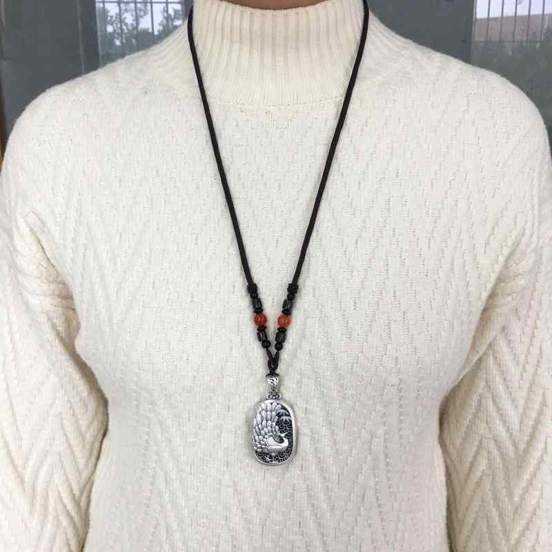 ペンダントトップ レディース 大人 レトロ エスニック 春夏 大きめ セット チェーン ロング アクセサリー ネックレス ストラップ ビーズ 999銀 シルバー 孔雀 牡丹