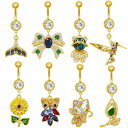へそピアス ユニセックス 欧米風 フラワーモチーフ 蝶モチーフ ハートモチーフ ジルコニア キラキラ 真鍮 ステンレス 電気メッキ 普段使い カジュアル ファッション ボディピアス