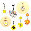 へそピアス レディース 欧米風 シンプル かわいい デイジー バタフライ フラワーモチーフ エナメル加工 合金製 ボディピアス ジュエリー おしゃれ 春夏