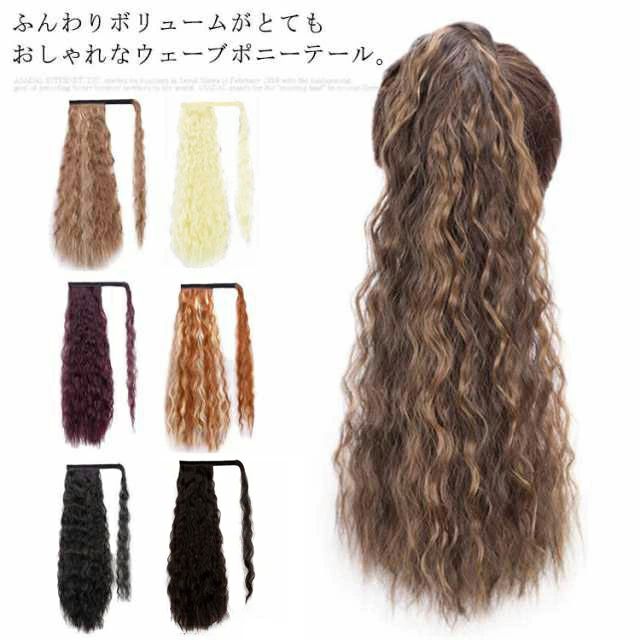 ポイン 襟足 つけ毛 マジックテープ エクステ ウィッグ ワッフル コスプレ ロング 60cm カール ウィッグ ポニーテール ウェーブ