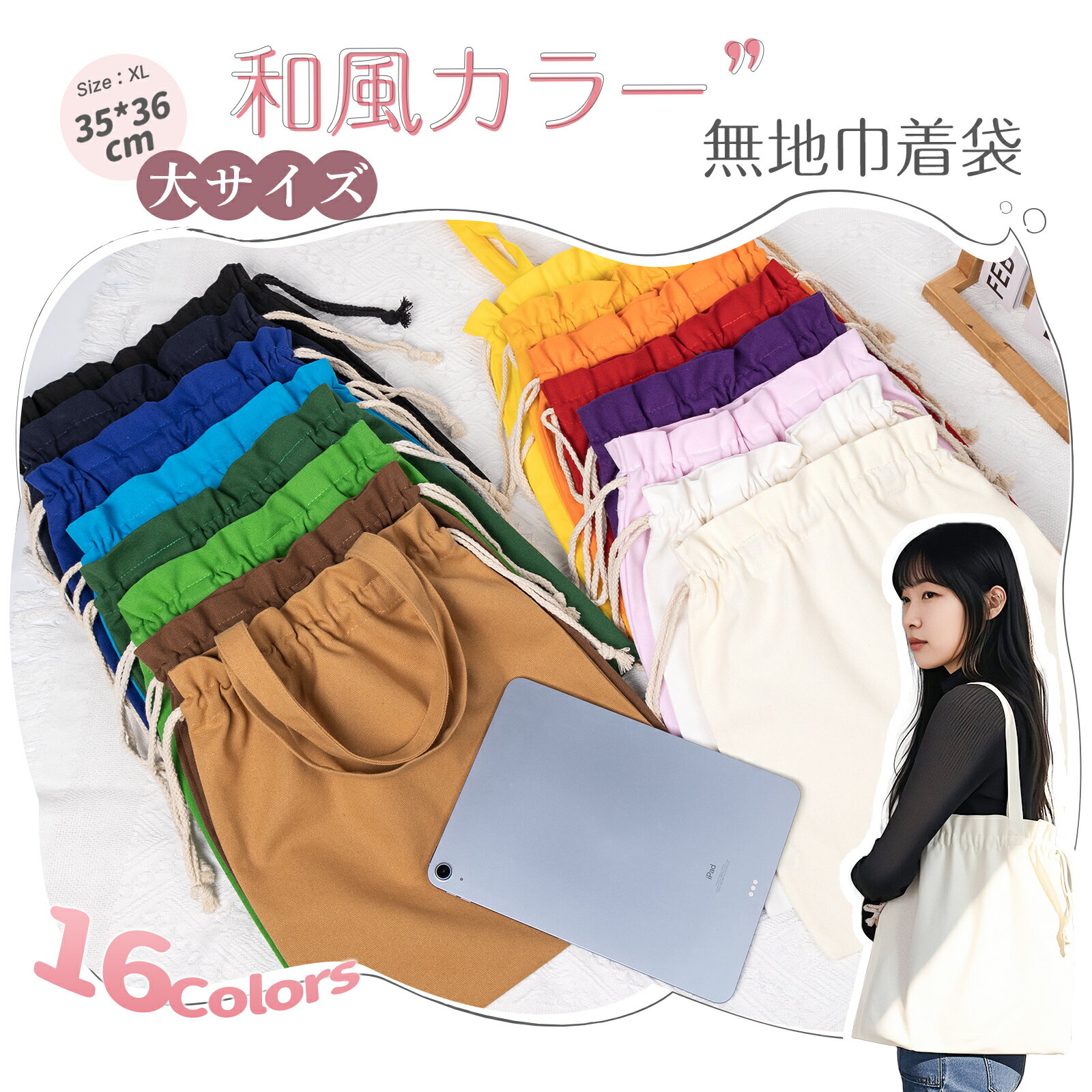 【Poco'ce掲載・本日限定全品15%OFF!】 巾着バッグ 巾着袋 持ち手付き MOELIFE公式 大 無地 巾着 おしゃれ かわいい 帆布 きんちゃく袋 大きい エコバッグ こども インナーバッグ 巾着ポーチ 麻袋 袋 布 弁当箱 小物入れ 体操服入れ 給食袋 モバイルバッテリー ケース