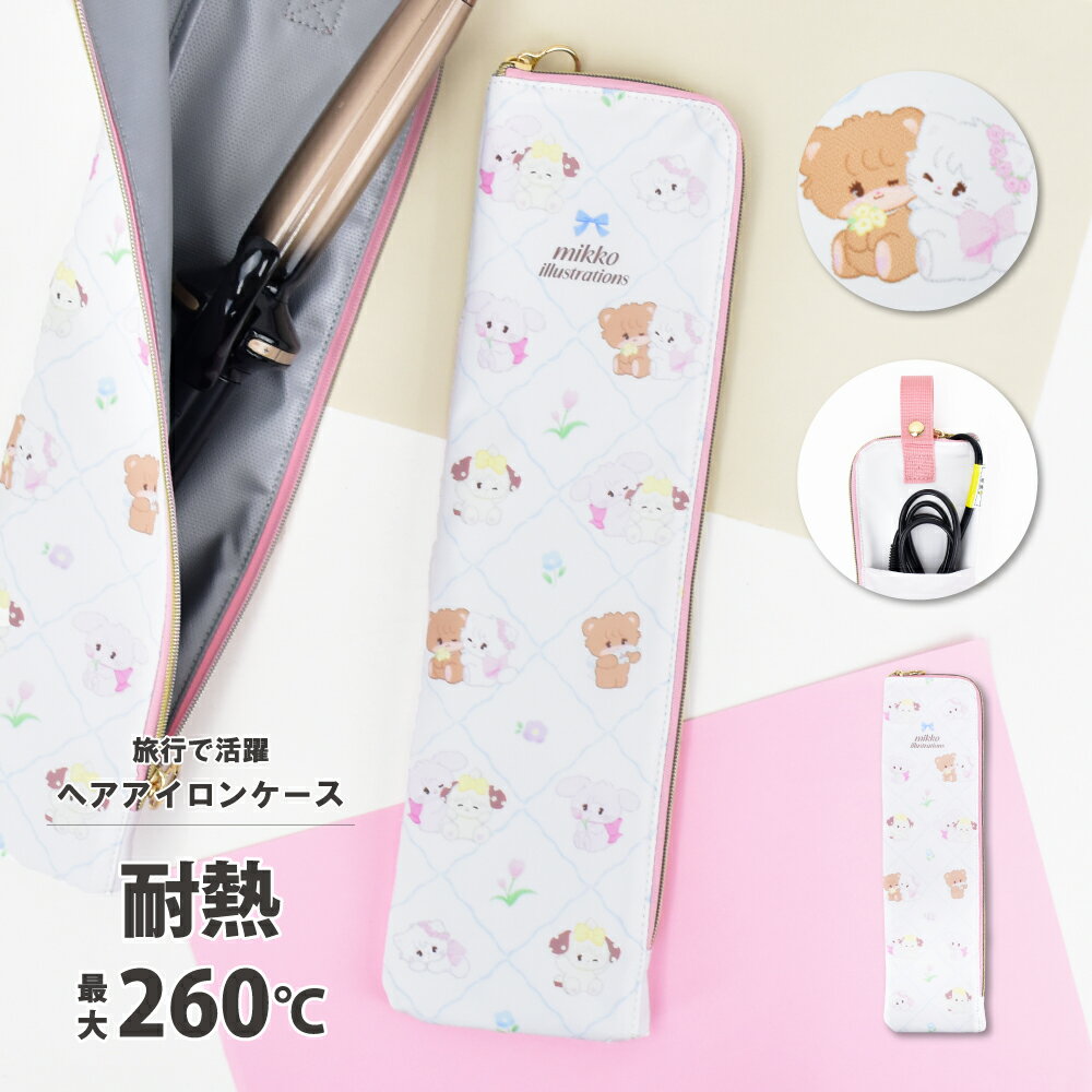mikko illustrations ヘアアイロン ミニ ケース トラベルポーチ ヘアアイロンポーチ 耐熱 熱いまま 吊り下げ 旅行グッズ 収納ケース レディース 女子 旅行 出張 修学旅行 大人 大学生 高校生 学生 おしゃれ かわいい キャラクター characters グッズ 人気