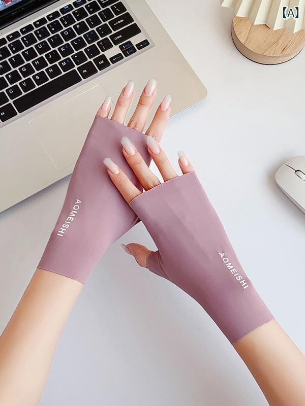 手の甲 ハンドカバー フィンガーレス 日焼け防止 手袋 涼しい ひんやり 快適 レディース 夏用 薄手 マニキュア サイクリング タイピング 紫 白 ピンク 伸縮性