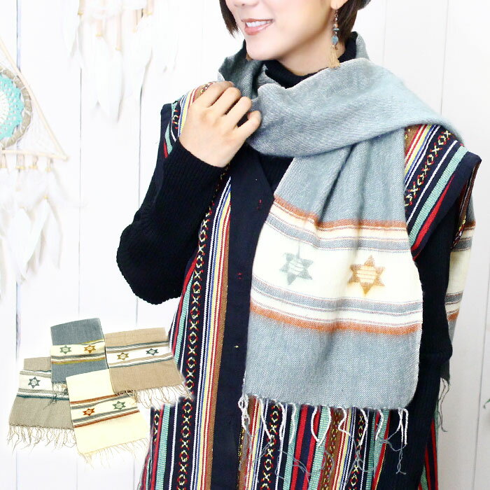 マフラー ショール レディース !ストライプ&スターミディアムストール 2025年秋冬新作 アジアン ファッション エスニック ファッション アジアン ストール レディース マフラー 秋冬 ethnic stall ladies 体型カバー 30代 40代 50代 60代