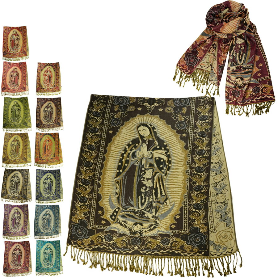 男女兼用 ストールGUADALUPE PASHMINA STALL グアダルーペ パシュミナ ストールブラウン グリーン オレンジ ネイビーブルー バーガンディ レッド ピンク パープルメンズ レディース 聖母 マフラー ひざ掛け インテリア