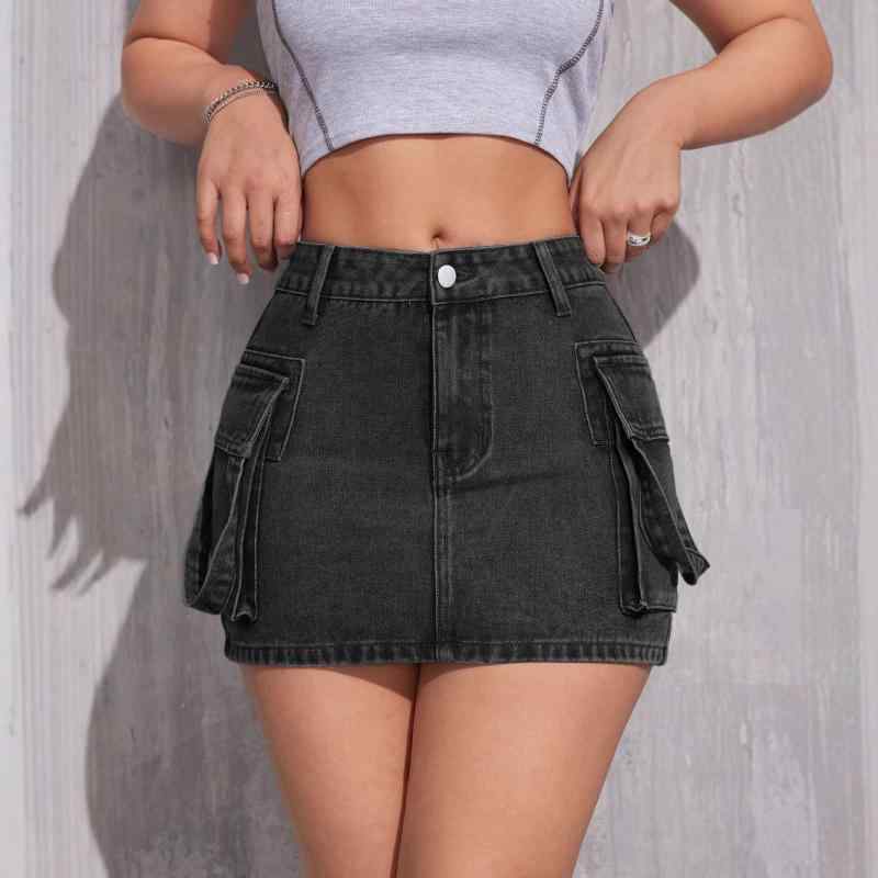 デニムスカート レディース ハイウエスト Y2K ダブルポケット タイト ミニスカート ショート丈 春 カジュアル アメカジ風 ギャルスタイル 切り替えデザイン