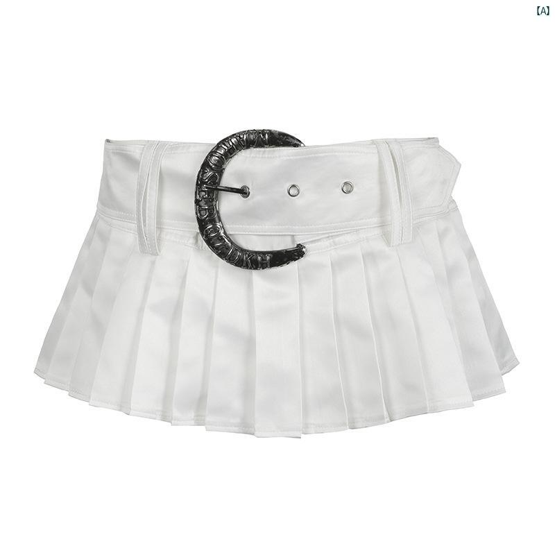 レディース Y2K ファッション 2000代 ソリッドカラー y 2 k ミレニア ル スタイリッシュ ガール メタル バックル スプライシング ワイド ウエスト プリーツスカート 快適 スリム ミニ スカート