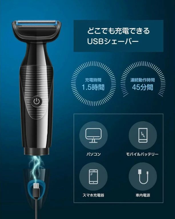 商品説明商品情報 ボディシェーバーは3種類の刃が搭載され、長い毛や癖毛は前後2種のトリマー刃でしっかりカットし、最後は中央のネット刃でお肌に優しくシェービングすることで深剃りを実現します。前のストレート型トリマーで腕や胸、お腹などの広範囲を効率よく除毛でき、後ろのカーブ型トリマーでワキ、顎のしたなどの処理しにくい部位にフィットし、剃り残すことなくケアできます。全身の無駄毛処理がこの1台で実現します。男性専用ムダ毛シェーバーは高品質でアレルギー防止ステンレス刃を使っており、肌が弱い方でも安心に使用いただけます!丸みを帯びた刃先で肌を優しくケアしてくれデリケートな部位にもやさしい設計です。IPX6防水設計、USB充電口もボディシェーバー内に内蔵され、本体丸ごと水洗いOK!乾いた状態でも、せっけんやボディソープなどの泡をつけてお風呂剃りも泡剃りもできます。ご注意・製品の性質上、サイズに関して多少の誤差は発生してしまいますので、何卒、ご了承下さいませ。・お使いの端末によって実際の商品と色が若干異なる場合がございます。■商品の交換・返品につきまして■お客様のご都合による商品の交換につきましては、往復の送料をご負担いただきます。未使用品のみ、交換・返品の対象となります。使用痕がある等の商品につきましては、交換・返品をお受けできません。