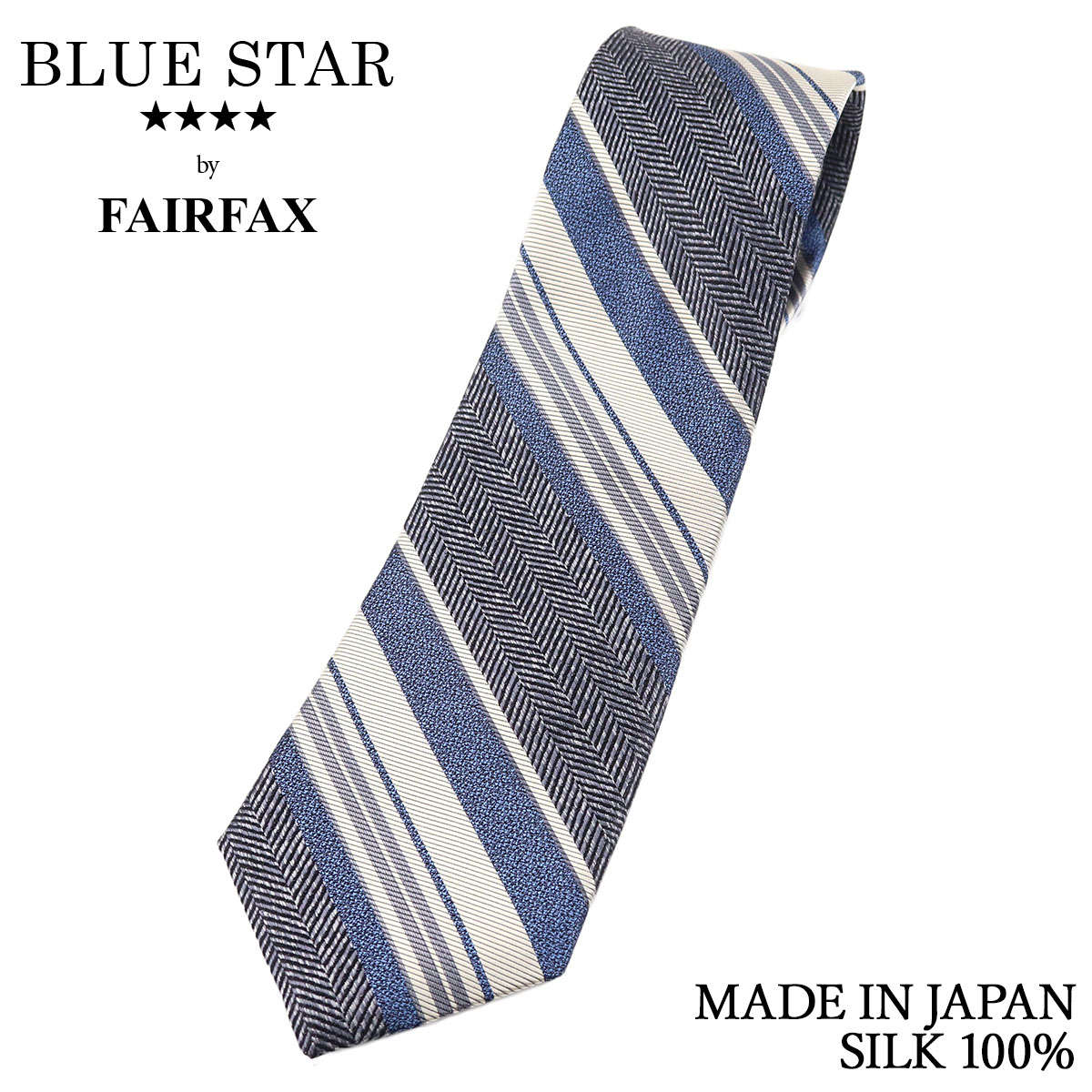 フェアファクス FAIRFAX ネクタイ ストライプ メランジ調 ネイビー ヘリンボーン織 シルク100% 日本製 ハンドメイド メンズ バレンタイン