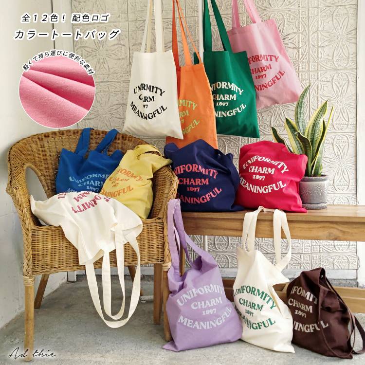 カラートートバッグ ロゴ トート バッグ かばん 鞄 肩掛け ショルダー サブバッグ A4サイズ 配色 プリント 大容量 エコバッグ コンパクト 便利 英字 通学 買い物 ショッピング【R-A】 トレンド おしゃれ お洒落 きれいめ カジュアル コーデ かわいい レディース