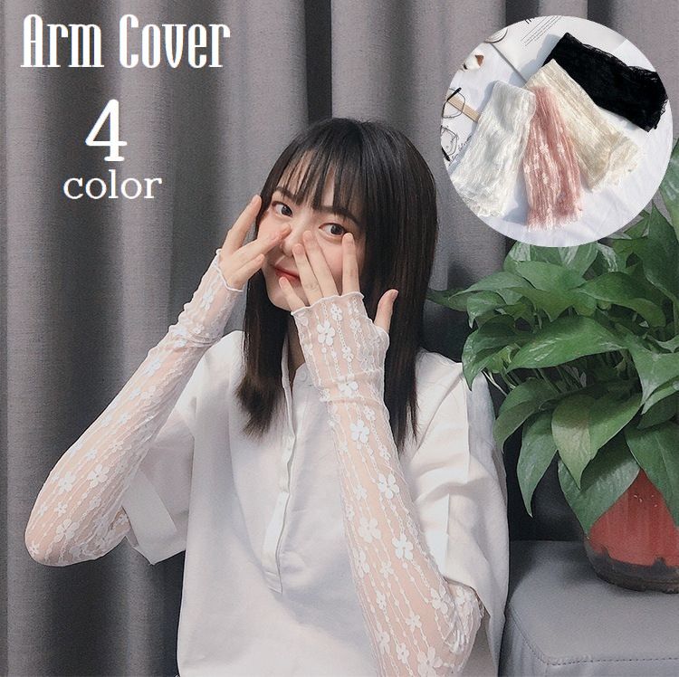 アームカバー ふんわり 楽天 ロング 腕カバー 手袋 レディース 袖 スリーブ カバー ゆったり 刺繍 メッシュ 通気性 上品 日焼け防止 日よけ 日除け